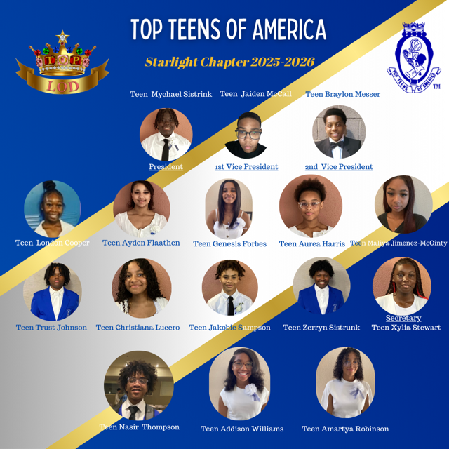 Since 1968, thousands of youth in secondary schools, nationally and internationally, have benefited from membership in Top Teens of America.